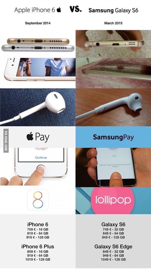 En un resumen, podemos apreciar que varias de las características tienen mucha similitud con los productos Apple, tales como: Procesador de 64 bits, sistema Touch ID, cuerpo de aluminio y por si fuera poco ahora los nuevos integrantes de la familia Galaxy NO tienen tapa trasera. Pero como siempre, hay que probar que tantas de estas «innovaciones» realmente funcionan, al final no sería la primera vez que Samsung nos deja un mal sabor en la boca… ¿te acuerdas de la publicidad sobre pasar la pagina solo con un gesto de tu mano sin tocar la pantalla?
